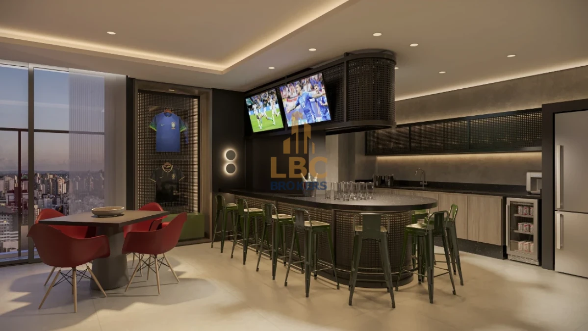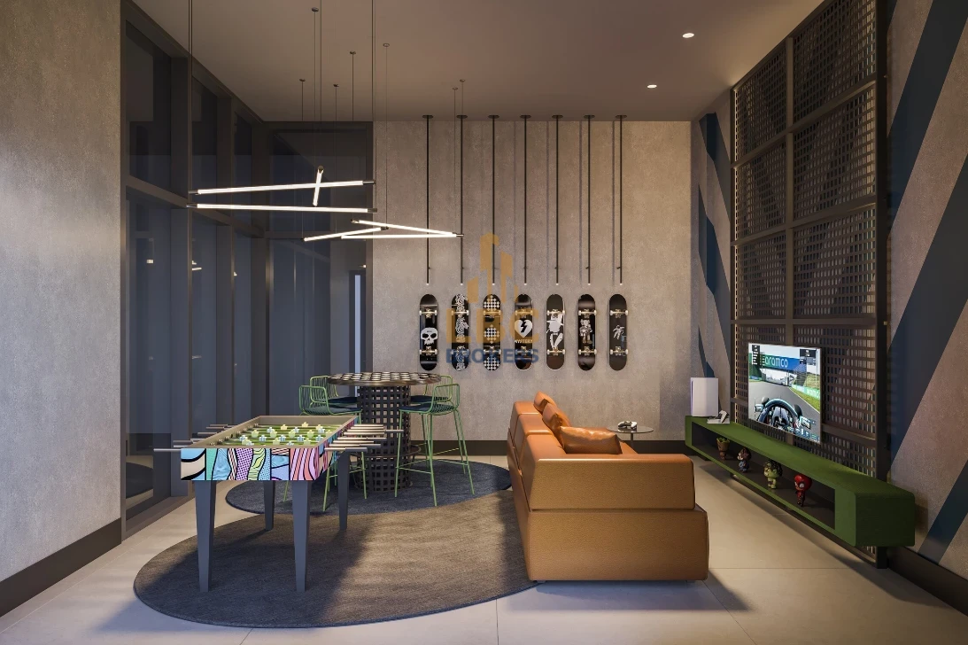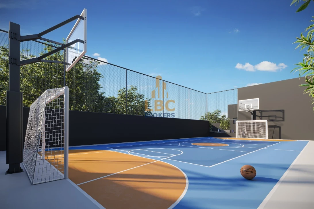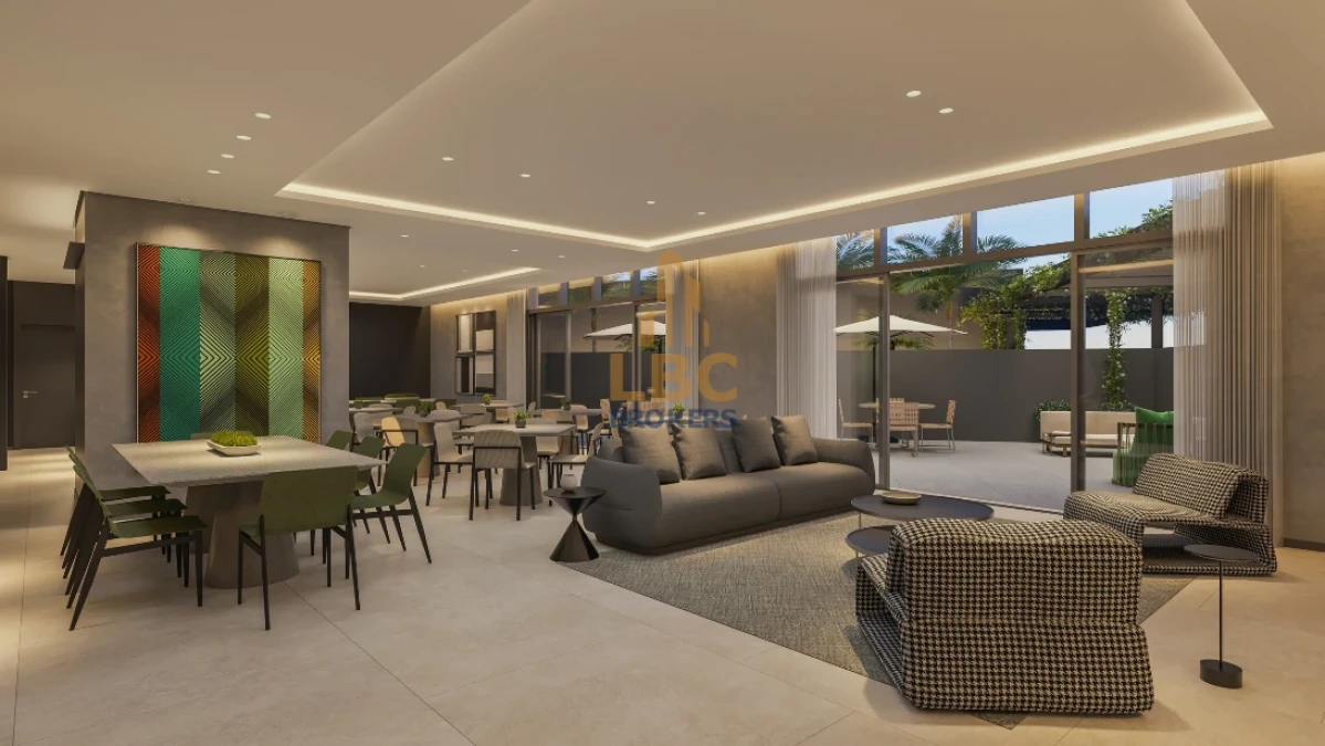 O condomínio conta com piscina, academia equipada, quadra poliesportiva, salão de festas e playground, além de segurança 24h, portaria eletrônica e elevadores modernos.