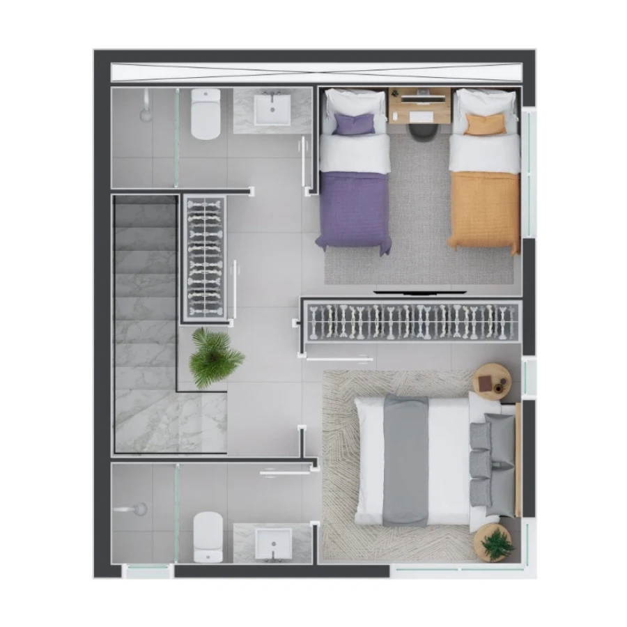O condomínio Plural conta com infraestrutura completa: academia, elevador, playground, salão de festas e segurança 24h, em um ambiente fechado que prioriza privacidade e estilo de vida elevado.