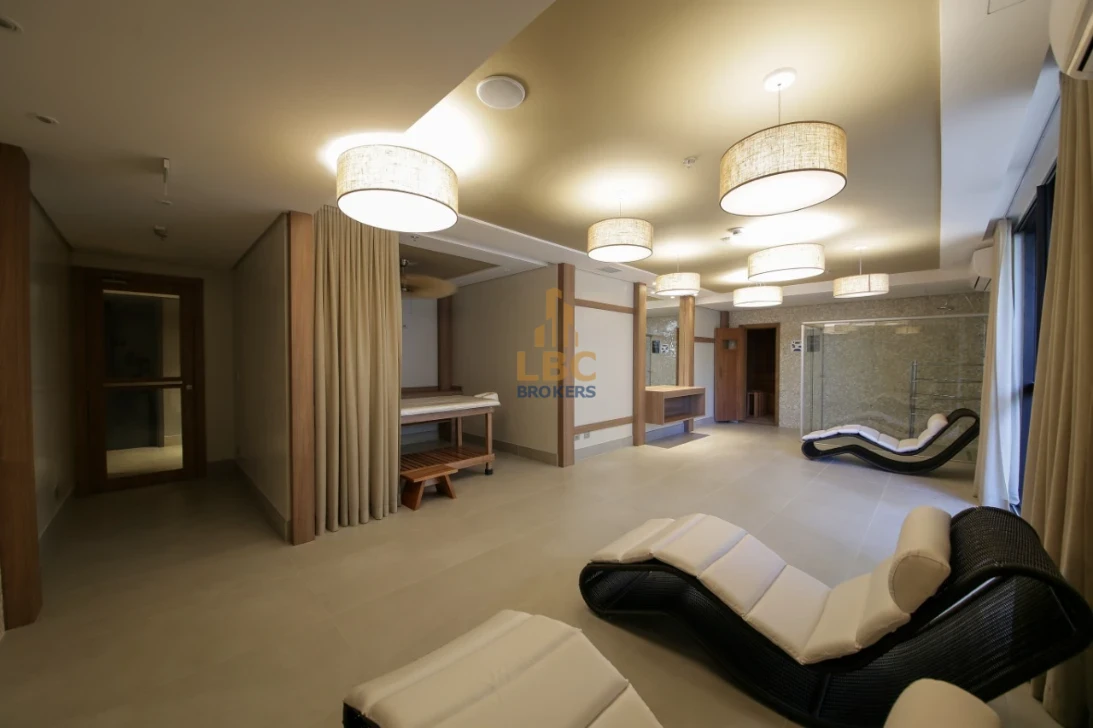 O edifício conta com 4 elevadores, salas de reunião, academia, sala de massagem, saúna, terraço externo e um lindo lounge para receber os moradores e hóspedes, além de um restaurante em anexo.
