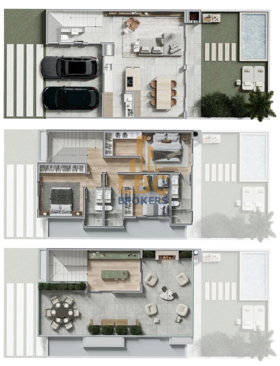Com unidades de 212m² a 243m² privativos, com três suítes, lavabo, amplos quintais e duas vagas cobertas. Entrega prevista para 2026, com acabamentos de primeira linha e excelente padrão construtivo, garantindo ambientes bem distribuídos para o dia a dia da família.