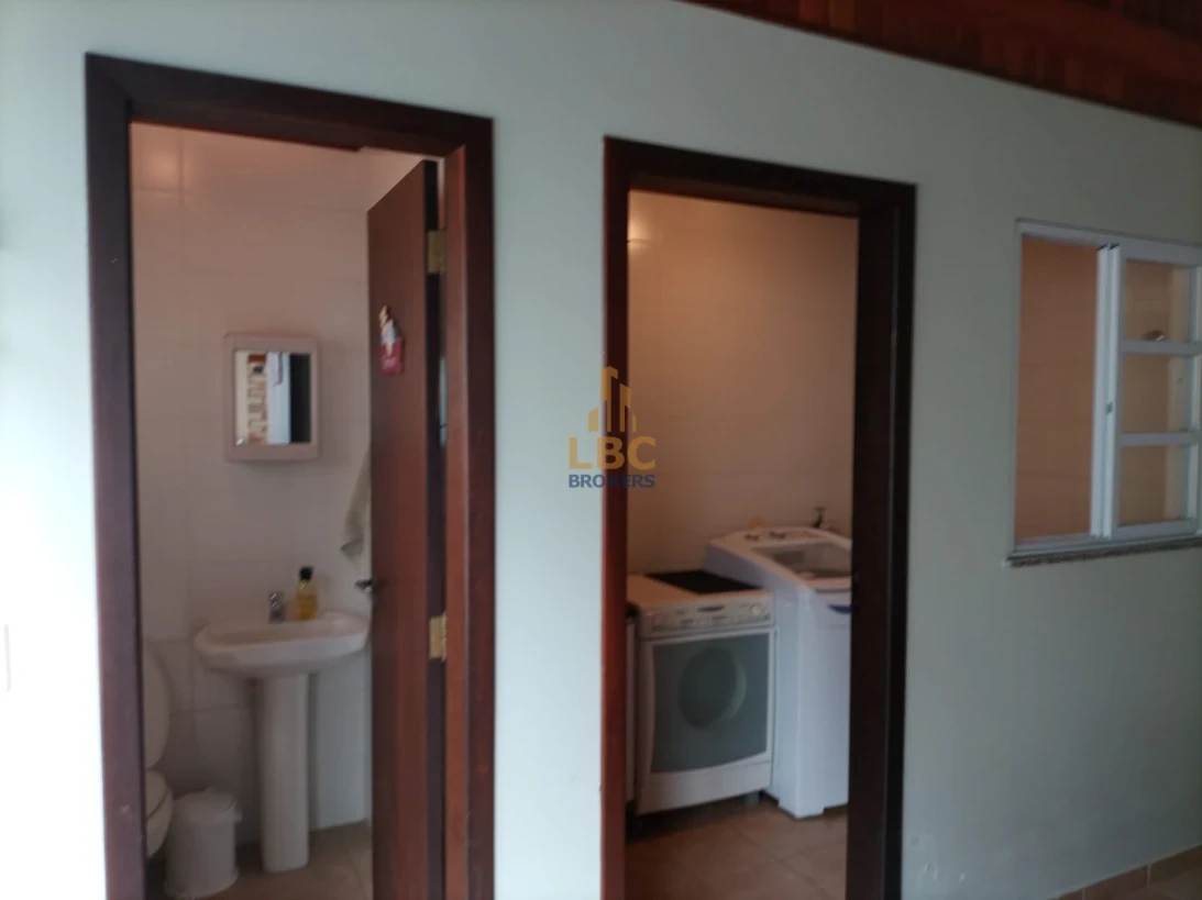 A edícula com churrasqueira, bancada e pia com tampo em granito, e um banheiro e com Portas de vidro que conectam perfeitamente o espaço com o quintal.
