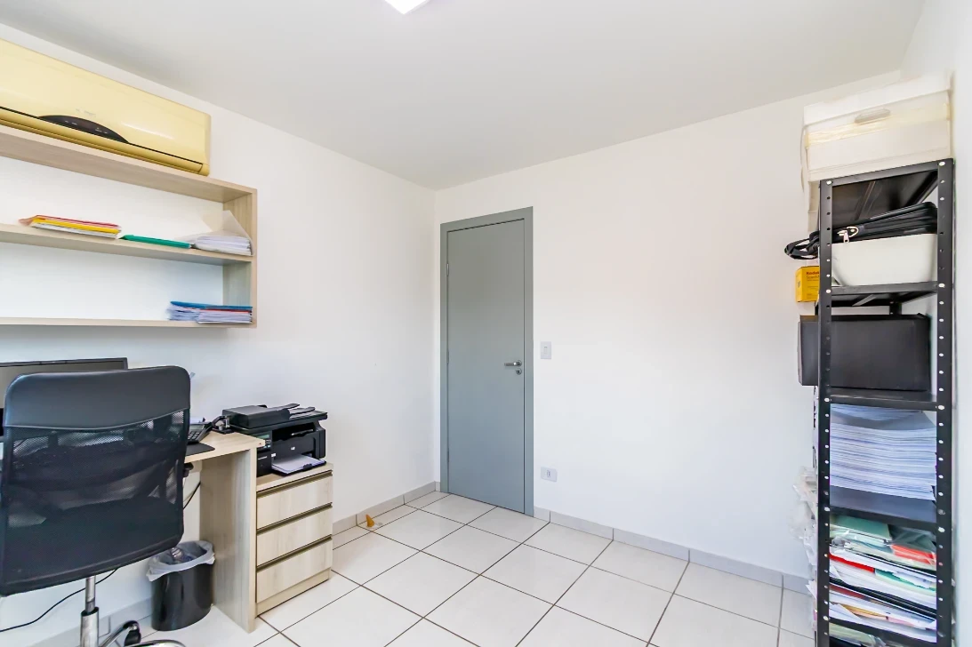 A planta é funcional e bem distribuída: suíte com closet, móveis planejados, um quarto mobiliado com sacada e outro quarto usado como escritório. Ático com bancadas para estudo ou trabalho e amplo espaço para sala de TV e um terraço de 10m² com área livre. O conforto térmico é garantido com ar-condicionado em todos os quartos e no ático, persianas integradas e aquecimento a gás. O sobrado já dispõe de carregador veicular elétrico instalado, trazendo praticidade e economia. No térreo o imóvel contempla uma espaço com churrasqueira a carvão que ampliam as opções de convivência.