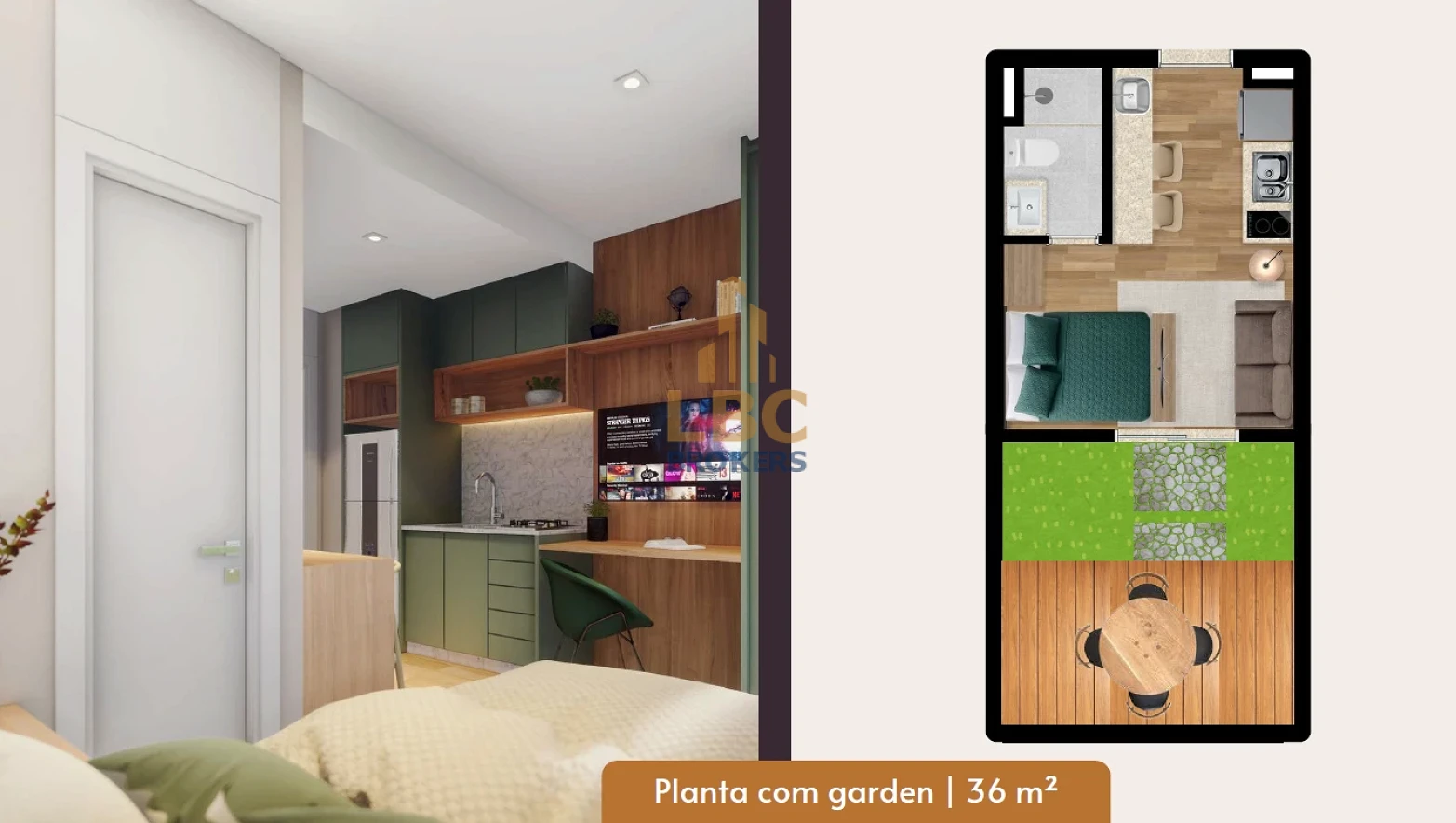 Com 39,07m² privativos, o espaço é bem distribuído, oferecendo ambiente integrado, iluminado e funcional — ideal para solteiros, estudantes ou pessoas que desejam morar com conforto em um ambiente compacto.